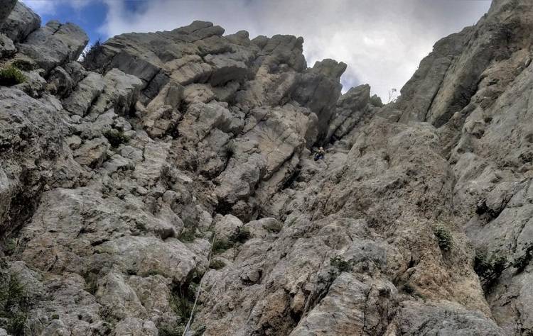Mεσημέριασε, ο ήλιος ζεσταίνει την καρδιά μας και ένα ραπέλ φτάνει να μας λυτρώσει από το νέο αδιέξοδο. Η διαδρομή μας μια νοητή γραμμή στην πέτρα, τίποτε από μακριά δε πρόκειται να φανερώσει το πέρασμά μας. Ούτε μάλλον από κοντά. Αρκούν αυτά που νοιώθουμε εδώ πάνω. Έτσι είναι με την αναρρίχηση, άμα δεν νοιώθεις, άστο. Νοιώθουμε την ανάγκη να αφήσουμε το μέρος ανέγγιχτο στο πέρασμά μας. Δεν είναι παρά ο σεβασμός για ότι μας προσφέρεται, έτσι μάθαμε. Η πραγματική αξία είναι να αναμετρηθείς με την ορθοπλαγιά με τα λιγότερα δυνατά μέσα, να παίξεις με τους όρους που βάζει εκείνη. Αυτή είναι η περιπέτεια μας, με συστατικό στοιχείο την αβεβαιότητα έκβασης και αποτελέσματος.