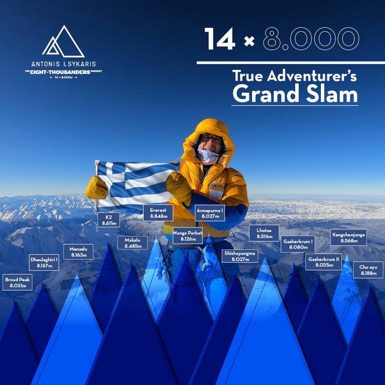 Μάλιστα το 1998, έχασαν την ζωή τους εκεί, οι ορειβάτες Νικος Παπανδρέου και Μπαμπης Τσουπράς. Ο Αντώνης Συκάρης είναι έτοιμος για τον μεγάλο στόχο, για το ‘Στέμμα των Ιμαλαΐων’, δηλαδή την ολοκλήρωση του λεγόμενου Grand Slam, με την ανάβαση και στις 14 κορυφές άνω των 8.000 μ. Μέχρι σήμερα, έχει σκαρφαλώσει με επιτυχία στις εξής: Everest 8.848m, Kanchenjunga 8.586m, Loche 8.516m, Manaslu 8.163m και στην Annapurna 8.091m