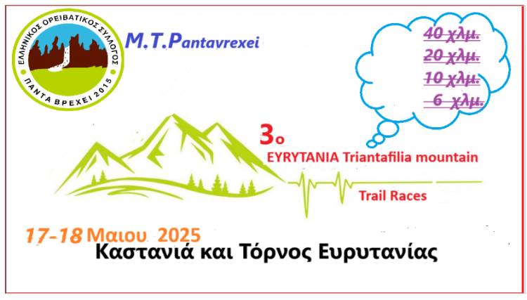 ΤΟΠΟΣ ΔΙΕΞΑΓΩΓΗΣ: ΚΑΣΤΑΝΙΑ και ΤΟΡΝΟΣ ΕΥΡΥΤΑΝΙΑΣ με διαδρομές στην Οροσειρά του Παναιτωλικού και αγώνας 40 χλμ. που διασχίζει την Τριανταφυλλιά 1810 μ υψόμετρο και Προφ. Ηλία η [Μπράσκα ]1660 μ υψόμετρο στην κοιλάδα του Κρικελοπόταμου με θέα το Πανταβρέχει και τα φαράγγια Δεκατιάς ,Γουρνόρεμα ,Κακαβόρεμα με θέα την Αποκλείστρα στα Χωριά Καστανιά - Πρόδρομος και Τόρνoς
