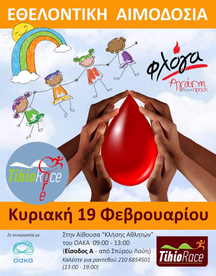 Η εκδήλωση Αιμοδοσίας θα υλοποιηθεί στην Αίθουσα Κλήσης των Αθλητών στο ΟΑΚΑ (Είσοδος Α) την Κυριακή 19 Φεβρουαρίου στις 09:00 – 13:30