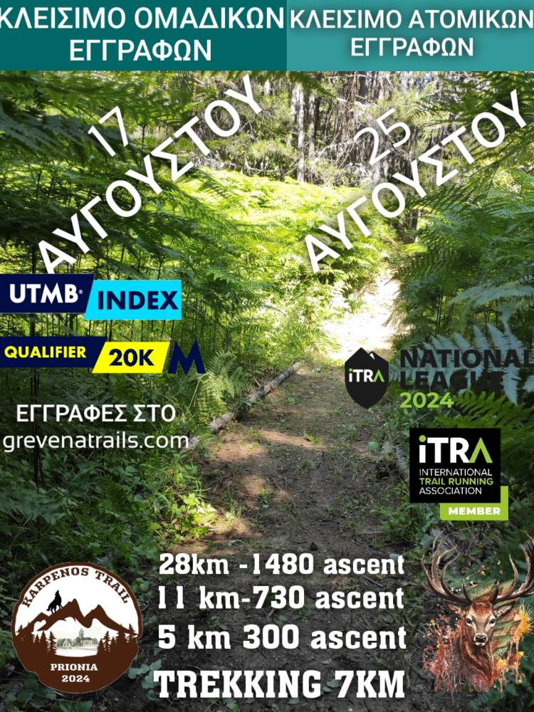 Καθώς μπήκαμε στην τελική ευθεία για το karpenos Trail 2, ανακοινώνουμε και τις ημερομηνίες που θα κλείσουν τόσο οι ομαδικές όσο και οι ατομικές εγγραφές για όλους τους αγώνες μας: