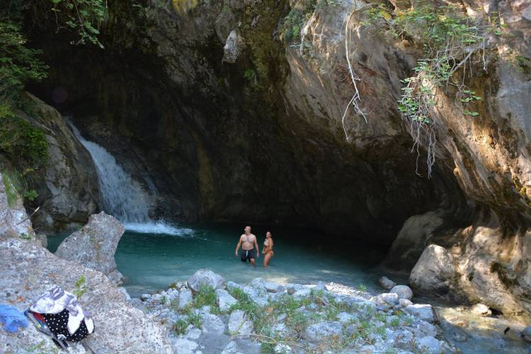 Στο καταρράκτη «Γαλάζια Λίμνη» θα γίνει διάλειμμα 45 λεπτών, για κολατσιό και βουτιές στα παγωμένα νερά του, φροντίστε να έχετε μαζί σας το μαγιό…