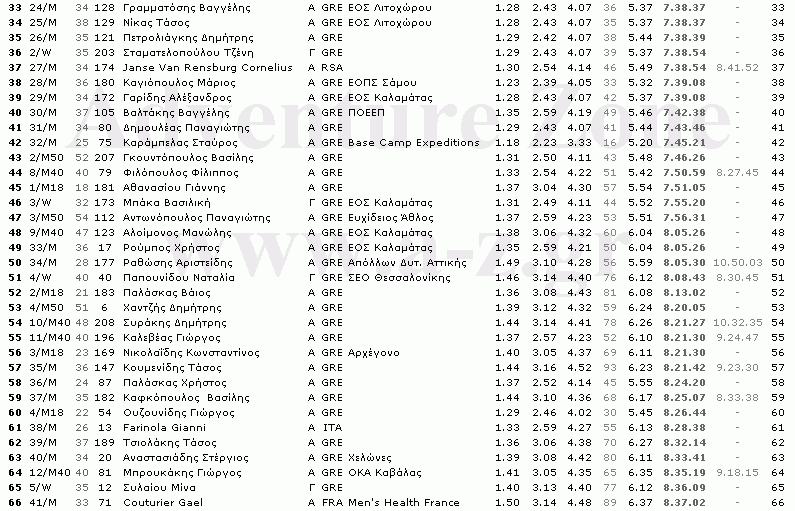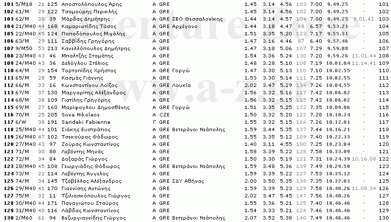 Στη στήλη του επίσημου τελικού χρόνου (ΚΜ-43,7) στους τελευταίους αθλητές του