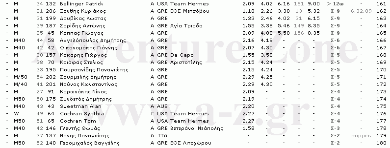 Μετά την τελική επεξεργασία των αποτελεσμάτων, βρέθηκε ότι στον αγώνα πήραν εκκίνηση 180 αθλητές από 11 χώρες (αύξηση συμμετοχών κατά 55% σε σχέση με το 2004). Τη γραμμή του τερματισμού πέρασαν μέχρι τις 12 ώρες οι 157 απ αυτούς, ενώ άλλοι 4 τερμάτισαν εκτός ορίου. Οι αθλητές που εγκατέλειψαν στη διάρκεια του αγώνα έφτασαν τους 19, περίπου δηλαδή το 10% του συνόλου. Ο ένας στους τρεις συμμετείχε και στην πρώτη διοργάνωση το2004 ενώ ο μέσος όρος ηλικίας των συμμετεχόντων έφτανε τα 37 έτη, με τον μικρότερο αθλητή να είναι 18 ετών και τον μεγαλύτερο 70. Σύντομα θα προστεθεί και ο πίνακας της ομαδικής κατάταξης.
